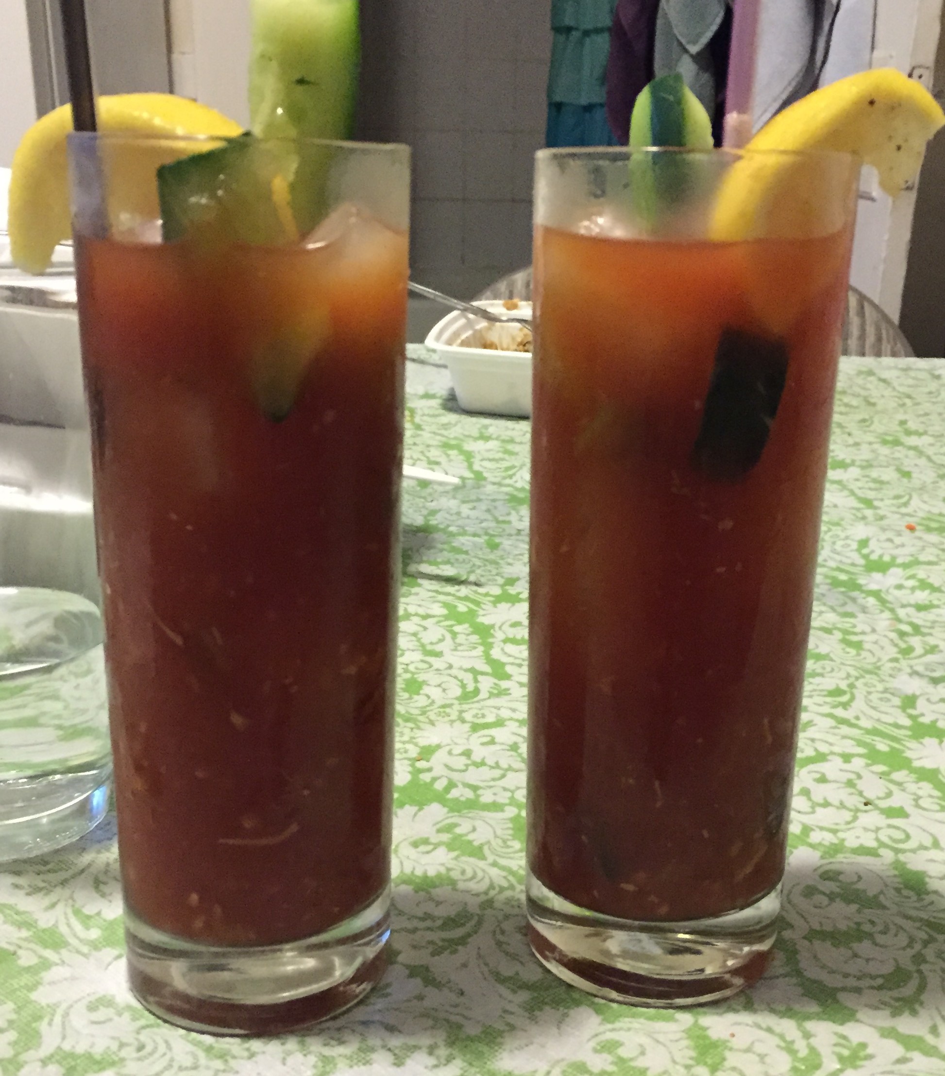 7. Once made fill a glass with ice and add vodka until about half full, then add your Bloody Mary mix! Garnish with lemon/lime/cucumber spear/celery and enjoy!