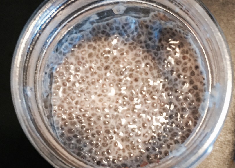 2. Put in the fridge for 1-2 hours. Then give it a stir to make sure the chia seeds did not sink to the bottom.