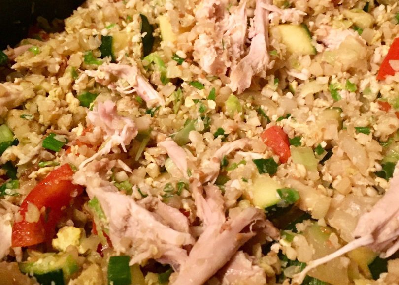 Diced cauliflower is extremely versatile and can be used in so many dishes. The cauliflower adds a carb-like element without it being an actual carb. In some stores they sell the cauliflower already diced, but if not it is pretty easy to do in a food processor. I’ve bought my diced cauliflower at trader joes but some other stores carry it also. This fried rice can be customized by adding whichever veggies or protein you want! Try tofu instead of chicken to make the dish vegetarian and add any favorite veggies to make the dish complete! This dish is hearty and nutritious and is the perfect one pot meal on a  cold night. Because this dish can be customized to whichever veggies or protein you want, it is an easy dish to make with leftover protein from the night before and veggies that need to be used. Another plus is that this dish only takes 30 minutes to make once the cauliflower is diced!
